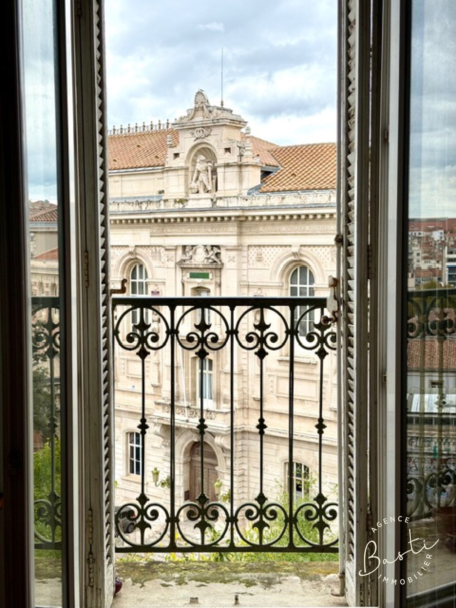 Occupant la totalité de l'étage, il est composé d'une entrée, d'un séjour-salle à manger avec cheminée décorative disposant de 3 grandes fenêtres et une très belle vue directe sur le Conservatoire ainsi que les toits de Marseille.